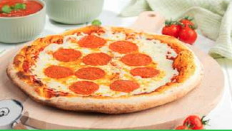 Garniture : Base sauce tomate provençale, mozzarella, pepperoni, origan