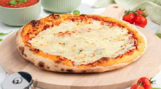 Garniture : Base sauce tomate provençale, mozzarella, roquefort, parmesan, emmental, origan